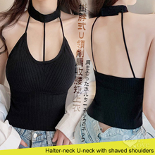 掛脖圓領削肩三線交叉美背小可愛﹝黑﹞