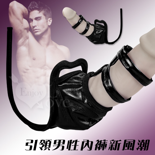 男性時尚風鏤空JJ套環C字褲﹝黑﹞