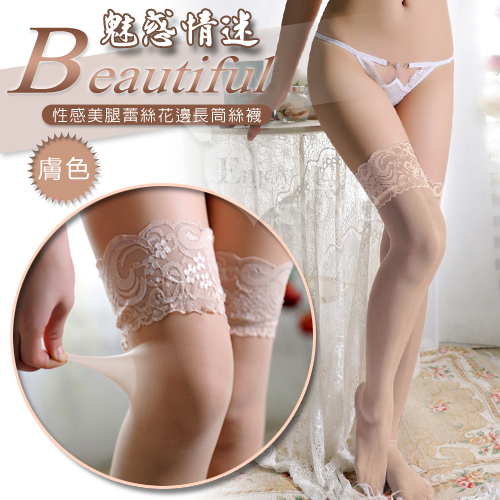 魅惑情迷!性感美腿蕾絲花邊長筒絲襪﹝膚色﹞