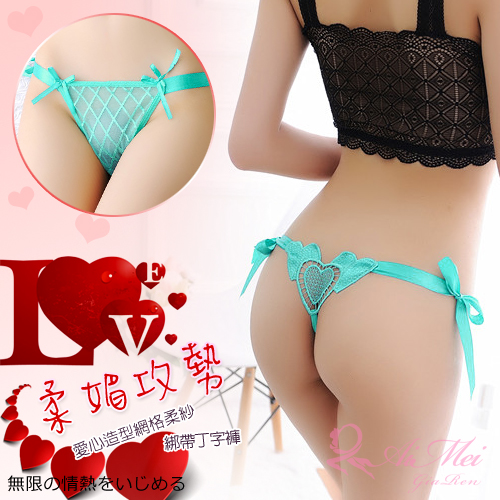 ※ 設計特色:綁帶、股間愛心造型、網格柔紗。