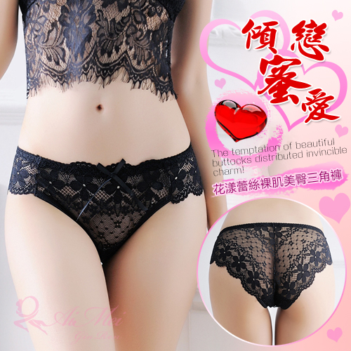 首頁 > 女性情趣內衣/褲 > 性感三/平角褲 > 傾戀蜜愛!花漾蕾絲裸肌美臀三角褲﹝黑﹞