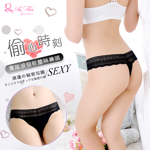 首頁 > 女性情趣內衣/褲 > 情趣T/丁字褲 > 偷心時刻!寬版波浪紋蕾絲褲頭T字褲﹝黑﹞