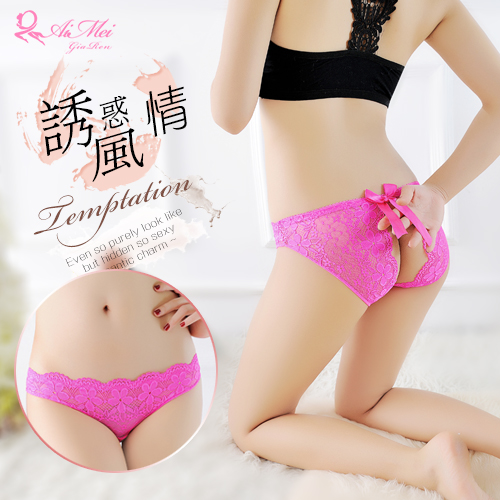 首頁 > 女性情趣內衣/褲 > 誘惑開襠褲 > 誘惑風情!花朵蕾絲蝴蝶結後開檔三角褲﹝玫紅﹞