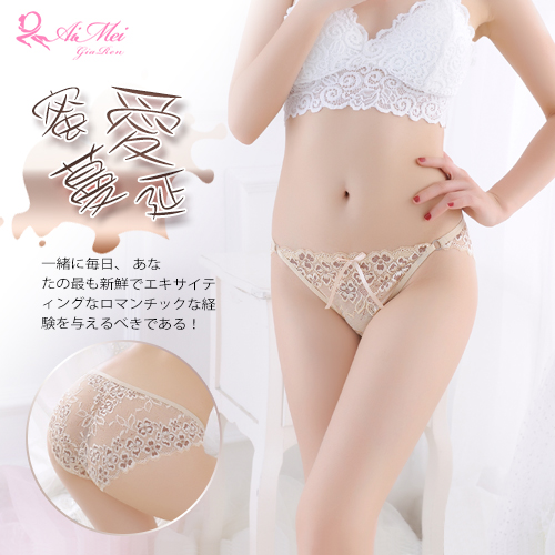 首頁 > 女性情趣內衣/褲 > 性感三/平角褲 > 蜜愛蔓延!雙色花漾蕾絲環扣三角褲﹝膚﹞