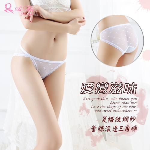 首頁 > 女性情趣內衣/褲 > 性感三/平角褲 > 愛戀滋味!菱格紋網紗蕾絲滾邊三角褲﹝白﹞