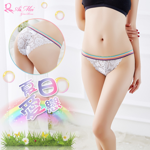 首頁 > 女性情趣內衣/褲 > 性感三/平角褲 > 夏日愛戀!彩紅腰帶拼接蕾絲三角褲﹝白﹞