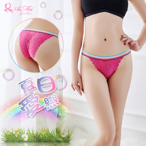 首頁 > 女性情趣內衣/褲 > 性感三/平角褲 > 夏日愛戀!彩紅腰帶拼接蕾絲三角褲﹝玫紅﹞