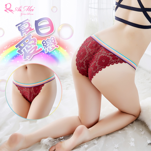 首頁 > 女性情趣內衣/褲 > 性感三/平角褲 > 夏日愛戀!彩紅腰帶拼接蕾絲三角褲﹝酒紅﹞