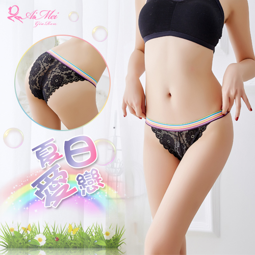 首頁 > 女性情趣內衣/褲 > 性感三/平角褲 > 夏日愛戀!彩紅腰帶拼接蕾絲三角褲﹝黑﹞