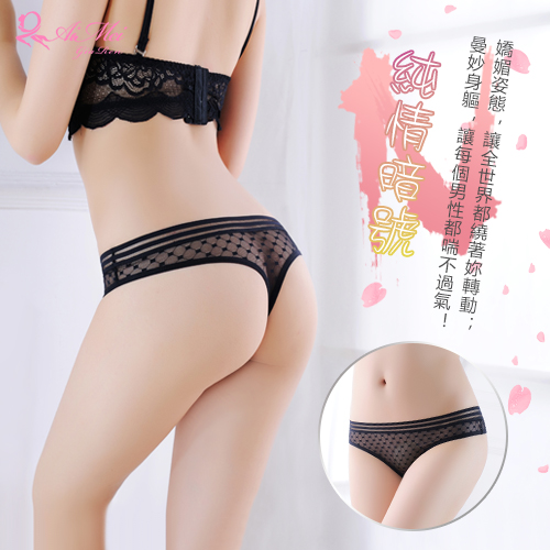 首頁 > 女性情趣內衣/褲 > 情趣T/丁字褲 > 純情暗號!薄透方塊圖樣柔紗T字褲﹝黑﹞