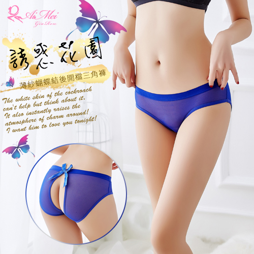 首頁 > 女性情趣內衣/褲 > 誘惑開襠褲 > 誘惑花園!薄紗蝴蝶結後開檔三角褲﹝寶藍﹞