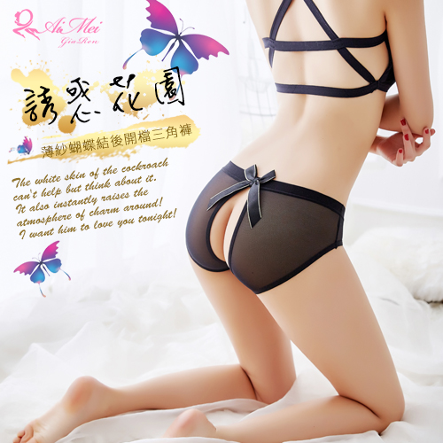 首頁 > 女性情趣內衣/褲 > 誘惑開襠褲 > 誘惑花園!薄紗蝴蝶結後開檔三角褲﹝黑﹞