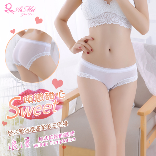 首頁 > 女性情趣內衣/褲 > 性感三/平角褲 > 傾戀甜心!愛心蕾絲滾邊柔紗三角褲﹝白﹞