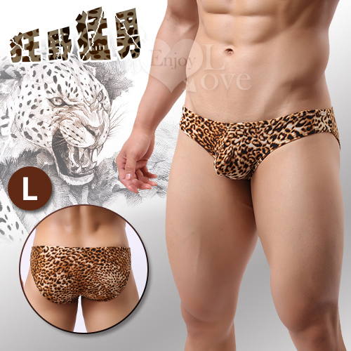 狂野猛男 ‧ 低腰激凸三角內褲 - 黃色豹紋﹝L﹞