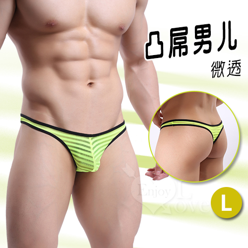 【凸屌男兒】條紋拼接亮絲微透低腰T字褲﹝黃 L﹞