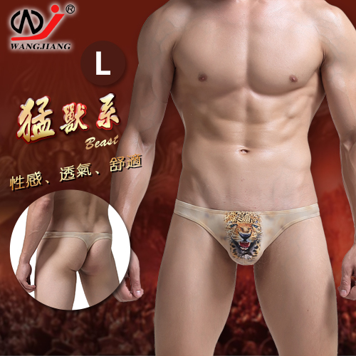 【網將WJ】猛獸系 ‧ 潮流印花T字褲 - 黃色花豹﹝L﹞