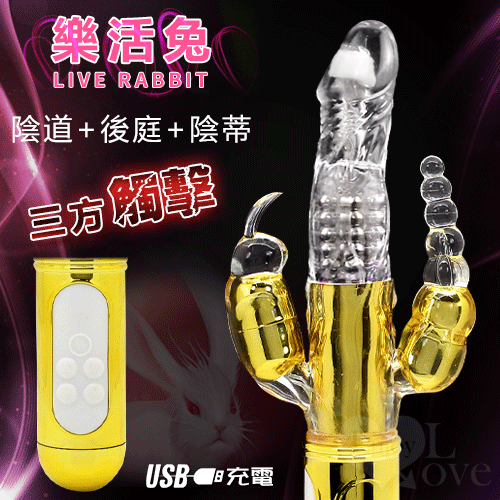 樂活兔 ‧ 4X8X36多功能旋轉+變頻震動充電按摩棒﹝陰道+後庭+陰蒂三方觸擊﹞炫金【特別提供保固6個月】