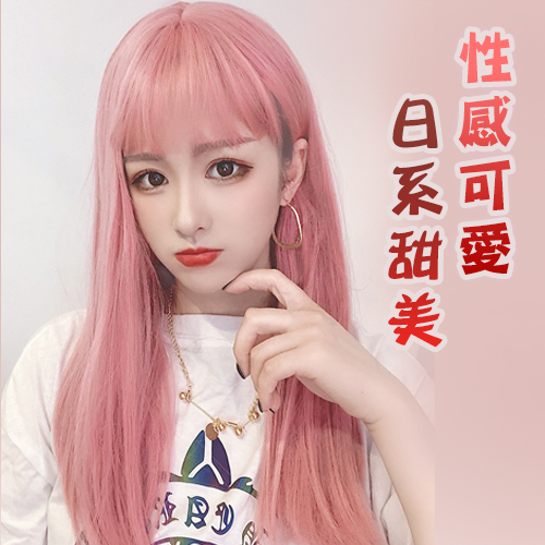 成人娃娃裝扮假髮 ‧ 齊瀏海 - 長直髮 / 粉色