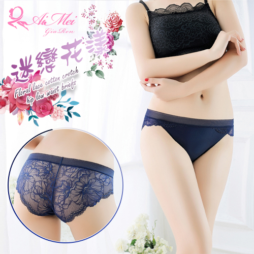 首頁 > 女性情趣內衣/褲 > 性感三/平角褲 > 迷戀花漾!花朵蕾絲棉襠提臀低腰三角褲﹝深藍﹞