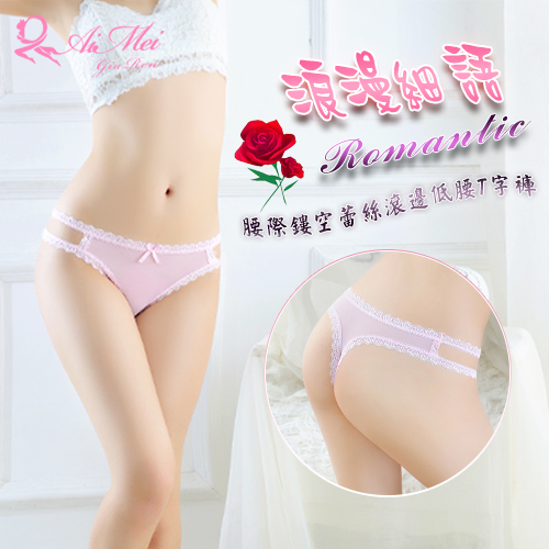 浪漫細語!腰際鏤空蕾絲滾邊低腰T字褲﹝粉﹞