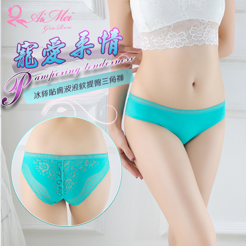 寵愛柔情!冰絲貼膚波浪紋提臀低腰三角褲﹝綠﹞