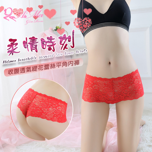 柔情時刻!收腹透氣緹花蕾絲中腰平角內褲﹝紅﹞