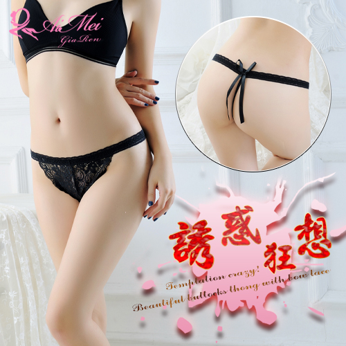 首頁 > 女性情趣內衣/褲 > 情趣T/丁字褲 > 誘惑狂想!蝴蝶結蕾絲美型俏臀中腰丁字褲﹝黑﹞