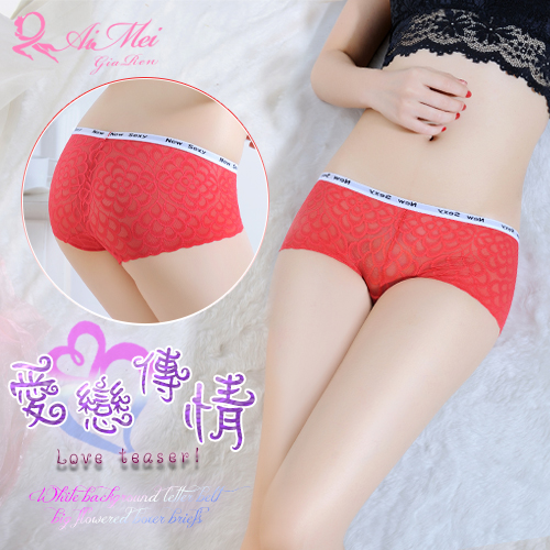愛戀傳情!白底字母腰帶大花辦中腰平角內褲﹝紅﹞