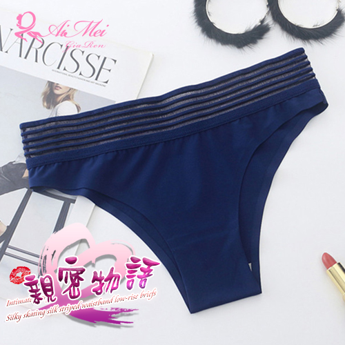 首頁 > 女性情趣內衣/褲 > 性感三/平角褲 > 親密物語!絲滑冰絲條紋褲頭低腰三角褲﹝深藍﹞