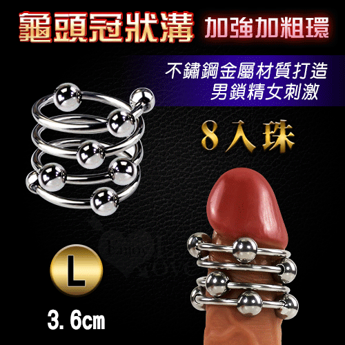 首頁 > 猛男加強專區 > 持久鎖精套環 > 不銹鋼龜頭冠狀溝加強加粗環 - 8入珠 可移滾動6珠﹝L號 內徑3.6cm﹞男鎖精女刺激