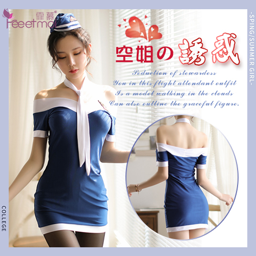首頁 > 女性情趣內衣/褲 > 角色扮演服 > 空姐角色扮演服!迷人鎖骨一字肩包臀短裙四件式套裝