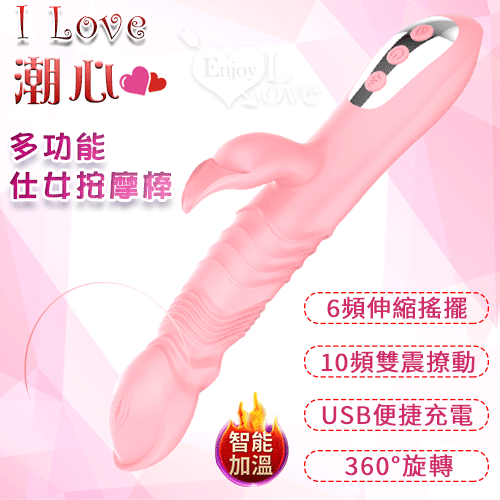 I love 潮心 ‧ 多功能仕女按摩棒﹝6頻伸縮搖擺+10頻雙震動+智能加溫+USB便捷充電﹞【特別提供保固6個月】