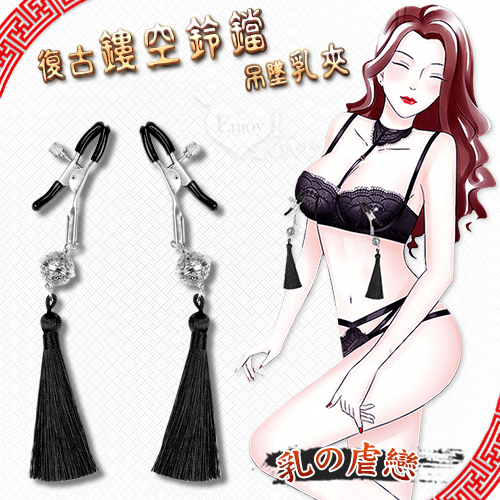 首頁 > 女性用品 > 陰/乳調教刺激用品 > 【乳の虐戀】復古鏤空鈴鐺 黑色流蘇 吊墜乳夾﹝一對裝﹞