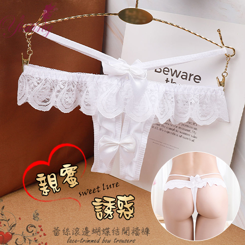 首頁 > 女性情趣內衣/褲 > 誘惑開襠褲 > 親蜜誘惑!蕾絲滾邊蝴蝶結開襠免脫低腰褲﹝白﹞