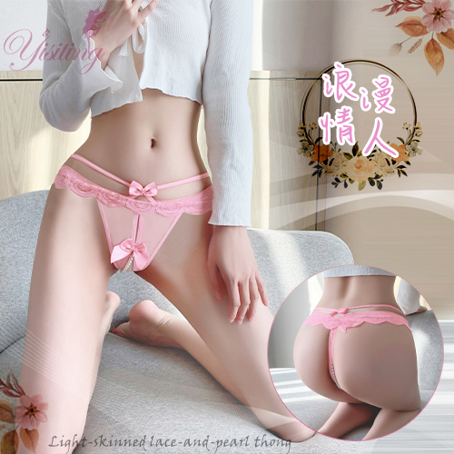 首頁 > 女性情趣內衣/褲 > 誘惑開襠褲 > 浪漫情人!輕膚柔紗拼接蕾絲迷人珍珠開襠丁字褲﹝粉﹞