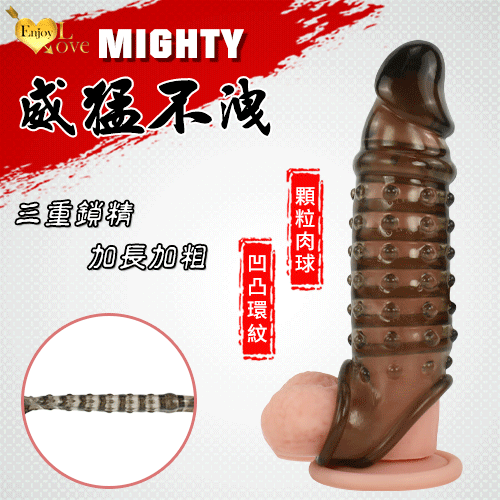 首頁 > 猛男加強專區 > 加長/加粗套-非電動 > Enjoy Love ‧ 威猛不洩 顆粒肉球+凹凸環紋造型 陰莖三重鎖精加長加粗水晶套環