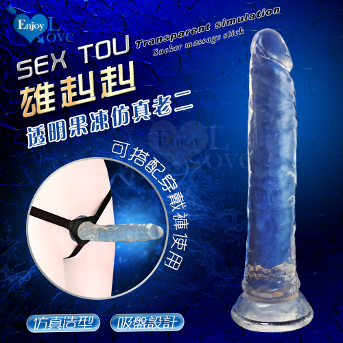 首頁 > 女性用品 > 逼真陽具-非電動 > Enjoy Love ‧ SEX TOU 雄赳赳 透明果凍仿真吸盤老二按摩棒 全長21公分﹝可另搭配穿戴褲﹞白色