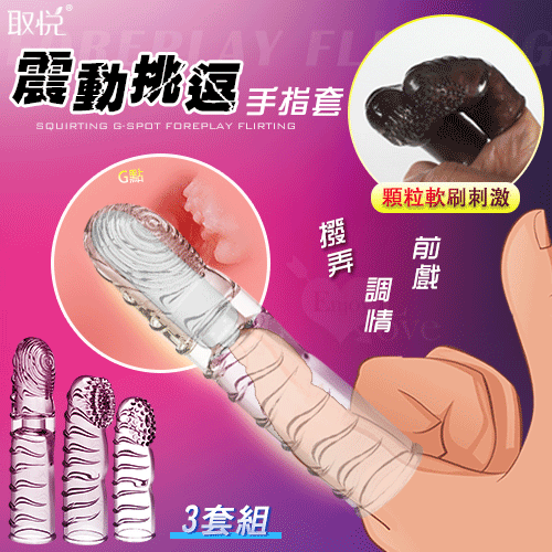 首頁 > 猛男加強專區 > 手指潮吹刺激套 > 取悅 ‧ 震動挑逗手指3套組 - 潮吹G點 前戲調情撥弄﹝凸牙顆粒螺紋可重複使用﹞(透明)【特別提供保固6個月】