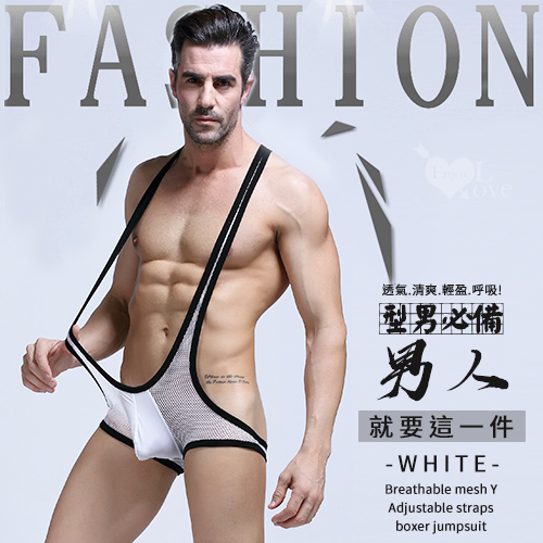 首頁 > 男士豪邁內衣/褲 > 連身衣/背心 > 《 Enjoy Love 》透氣網眼Y字可調背帶平角連身衣﹝白﹞