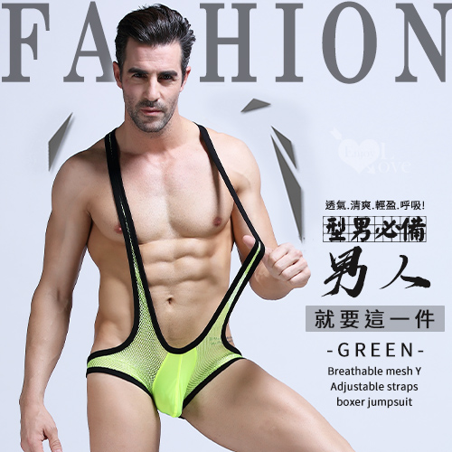 《 Enjoy Love 》透氣網眼Y字可調背帶平角連身衣﹝綠﹞
