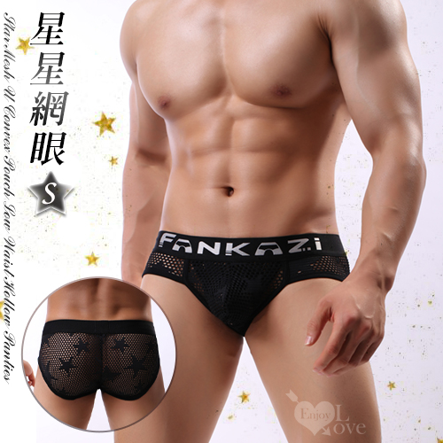 首頁 > 男士豪邁內衣/褲 > 三角褲 > 《 Enjoy Love 》星星網眼U凸囊袋低腰鏤空內褲 - 黑﹝S﹞