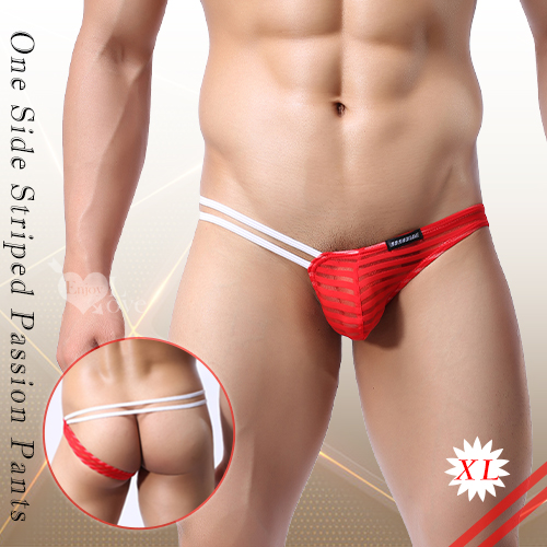 《 Enjoy Love 》性感U凸單邊條紋透膚激情褲 - 紅﹝XL﹞