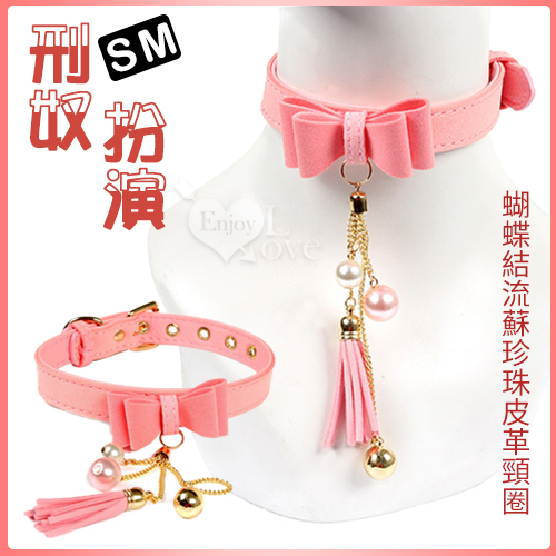 SM 刑奴扮演 ‧ 蝴蝶結流蘇金屬鍊珍珠PU皮革頸圈