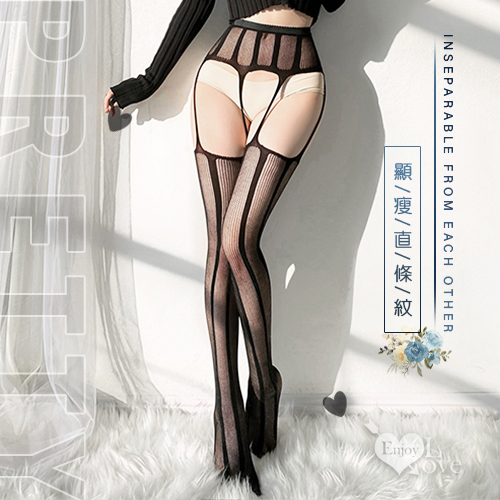 吊襪帶一體式貼合曲線連褲網襪﹝顯瘦直條紋﹞