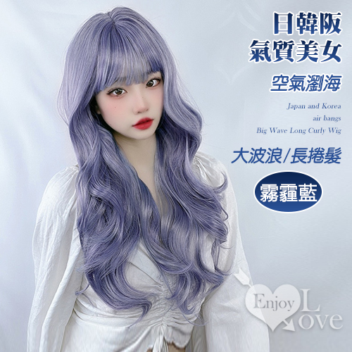 日韓阪空氣瀏海氣質美女大波浪長捲假髮﹝霧霾藍﹞