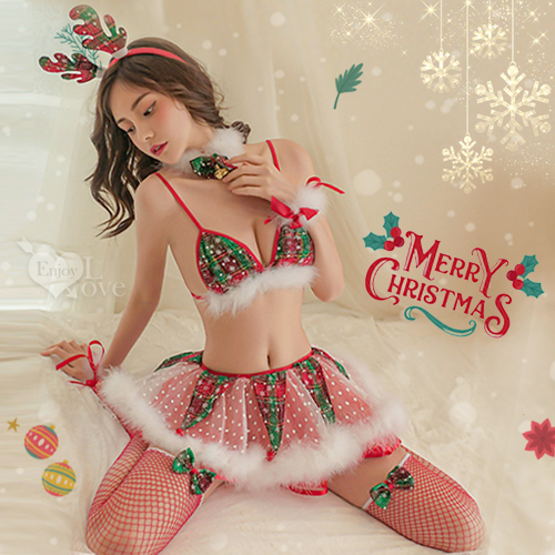 首頁 > 女性情趣內衣/褲 > 主題派對/夜店裝 > 聖誕魅力/新年狂歡派對!麋鹿髮箍紅綠格紋拼接點點雪花蓬蓬短裙七件式套裝