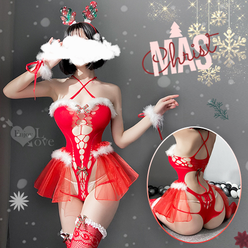 首頁 > 女性情趣內衣/褲 > 主題派對/夜店裝 > 聖誕魅力/新年狂歡派對!交叉肩帶毛毛邊條環狀裸空連身網衣四件式套裝
