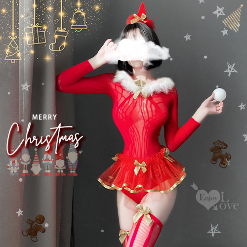 首頁 > 女性情趣內衣/褲 > 主題派對/夜店裝 > 聖誕魅力/新年狂歡派對!金邊蝴蝶結挖空裸背腰際蓬裙長袖連身網衣三件組