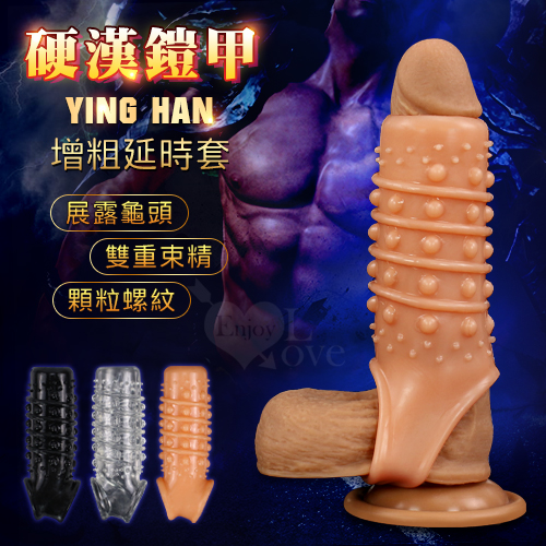 首頁 > 猛男加強專區 > 加長/加粗套-非電動 > Ying Han 硬漢鎧甲 ‧ 顆粒肉刺/環紋摩擦/套蛋鎖精 增粗延時套﹝膚色﹞