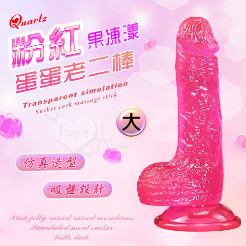 首頁 > 女性用品 > 逼真陽具-非電動 > Quartz 水晶炮 ‧ 7.7吋粉紅果凍漾凸起經絡仿真肉質吸盤蛋蛋老二棒-大號